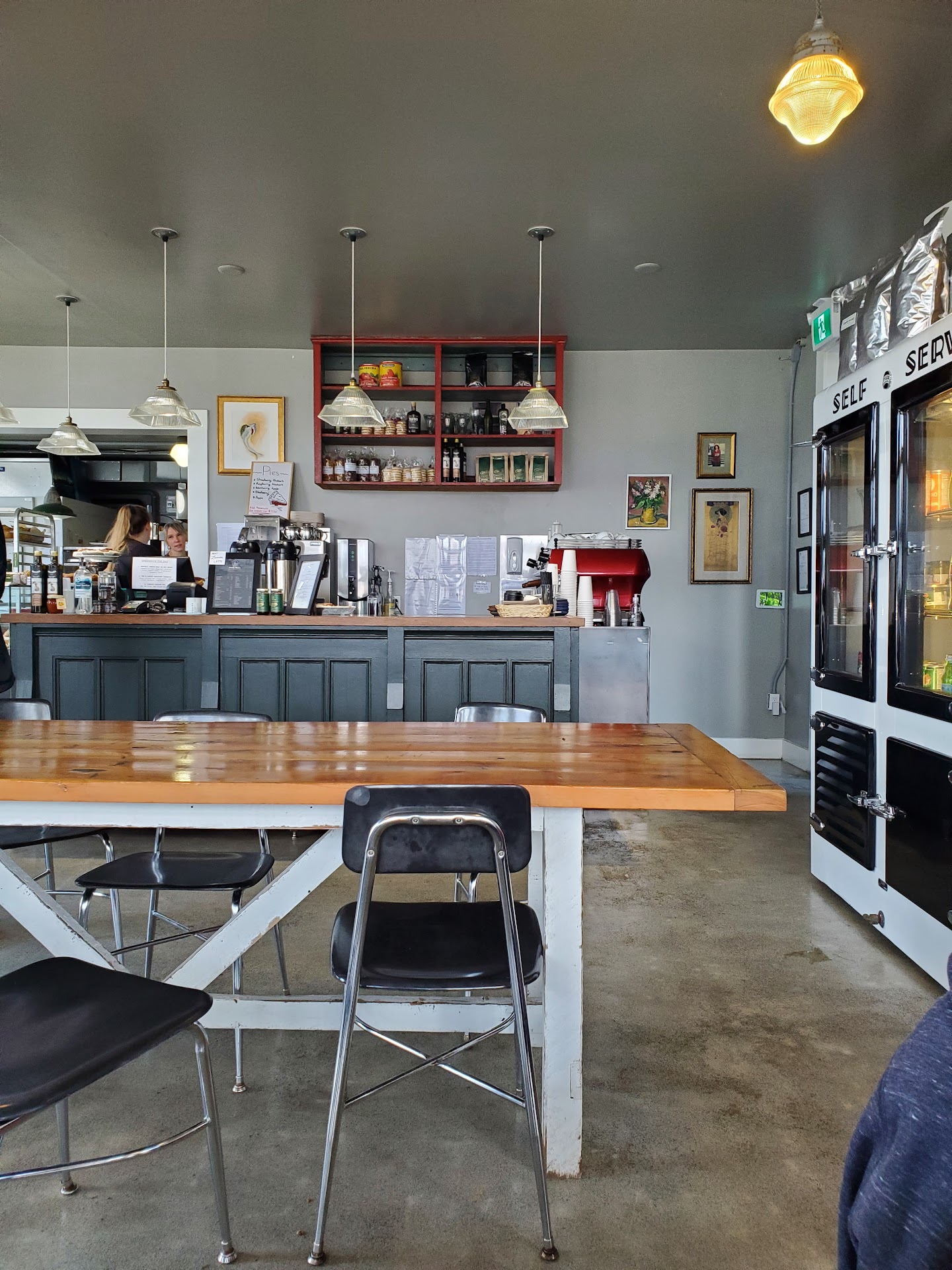 Ā Ā Ā Read moreI really wish we'd discovered this place sooner during our trip to Tofino! It was a bit of a trek down quite a steep hill, but we eventually found it and I'm so glad we did. The drinks to the pie to the pastry; everything was wonderfully delicious! We ordered quite a bit and even took some with us because it all sounded so good. We started with a slice of the the chicken pot pie, a slice of strawberry rhubarb pie a la mode, a cinnamon roll, a hot cross bun, and a breakfast sandwhich. The crust on the pies were flaky and short, crumbling away in your mouth as a crust should. The filling on both the chicken pot pie and the strawberry rhubarb pie were excellently seasoned; not too stong on any one flavor - perfectly balanced. I love a good breakfast sandwhich, and this one came with an interesting jalapeno relish that was sweet rather than hot. So good! The cinnamon roll was quite nice; no dry outter ring, just soft slightly gooey goodness. We took a tourtiere pie with us for the next leg of our journey. The staff were kind enough to give suggestions on how to reheat the frozen pie in our hotel with no oven. Even heated in a microwave, this meat pie was excellent! The crust was still wonderfully buttery and flaky. I'd never had this pie before; I'm grateful this was my first experience. All in all, this is a great location for some delicious food. Great staff, excellent fare, yummy drinks, and a great view...