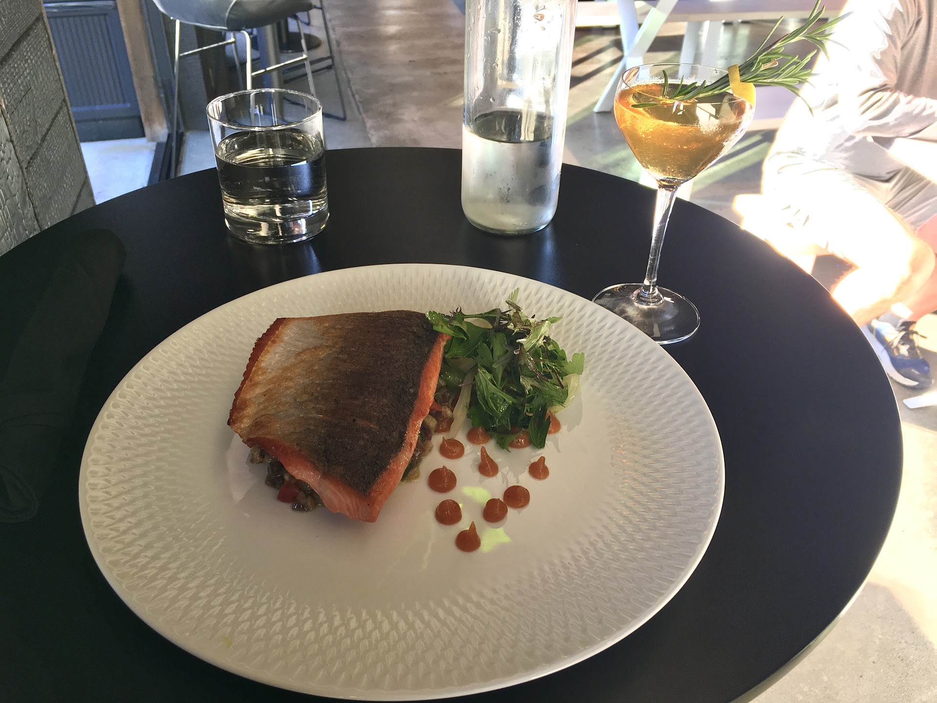 Read moreThe Bear describes itself as an "elevated sports bar". What this translates to is a laid back and upbeat but classy vibe and a menu of sophisticated but approachable dishes. And of course there are TVâs. They were a little busy when I visited on a Monday night but you didn't need a reservation to be seated right away. The service was good. My waitress was very friendly. While the food wasn't lightning fast, it took less time than I expected to get my entree after ordering given that they seemed busy, and my dessert came out very quickly. I had: Foragers martini: This tasted exactly as you would expect from the name. Spruce-flavoured anything was not actually in the ingredient list, but I would describe the flavour of the cocktail as "sprucey". It was pleasantly strong. Grilled wild sockeye salmon: My first thought was that this was a small portion for the price, but the huge plate was deceiving and this was actually a very satisfying serving with a large cut of salmon and a healthy heaping of farro salad. The salmon was cooked perfectly - I loved how the skin got crispy and flaky. The farro salad was hearty and delicious on its own or with the salmon, and the pickled fennel and the orange coulis were interesting compliments to enhance the dish. Chocolate basque cheesecake: I was going to choose this anyway, but my waitress also recommended it. This was a great basque cheesecake - rich with a slightly burnt crust. The candied hazelnut brittle totally elevated it. The slice was big enough to share, but it was really good and surprisingly not too heavy, so I finished it by myself easily. It was so expensive though... I was staying at the hotel so I got 10% off food, and even then I spent $80 after tip! I knew it was going to be expensive and decided to treat myself since it was my last night in Tofino, but I think without the 10% I would've gone somewhere else anyway. Even with the whole "elevated" thing and acknowledging that the food and drink was not at all what I would consider typical sports bar food, it felt so bad to spend $80 on one person at a place calling itself as...