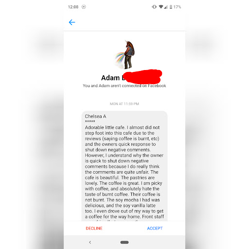 Edit: Since posting this review I have had private messages insulting me on Facebook, which is not linked to my Google account at all. See photos.