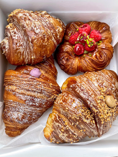 Distillery resident here. The croissants and pastries are absolutely delicious, nothing to say there. HoWEVER , and this is a dealbreaker for me. You should not have pastries laying exposed on the top (above the pastry cabinet) between the customers and the staff. As customers are communicating with the staff about their order people are spitting right on the pastries in the tray that are then being sold at a premium price. I felt so awkward trying to order over - exposed food. Please do something about this because as is I don’t think I’ll be coming in to buy from here if I see people trying to order over unsold food. Hygiene is a big thing, especially so post covid. No one wants peoples spit particles on...