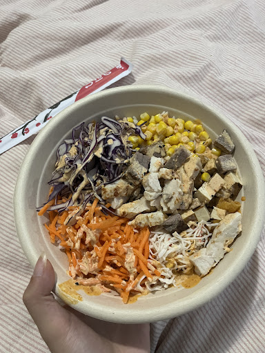 Read moreGot the Spicy Mango Salmon with white rice base poke bowl. Service was fast and got a free water as well. I usually don't expect fast service during lunch rushes because of how busy it is but they were phenomenal here!