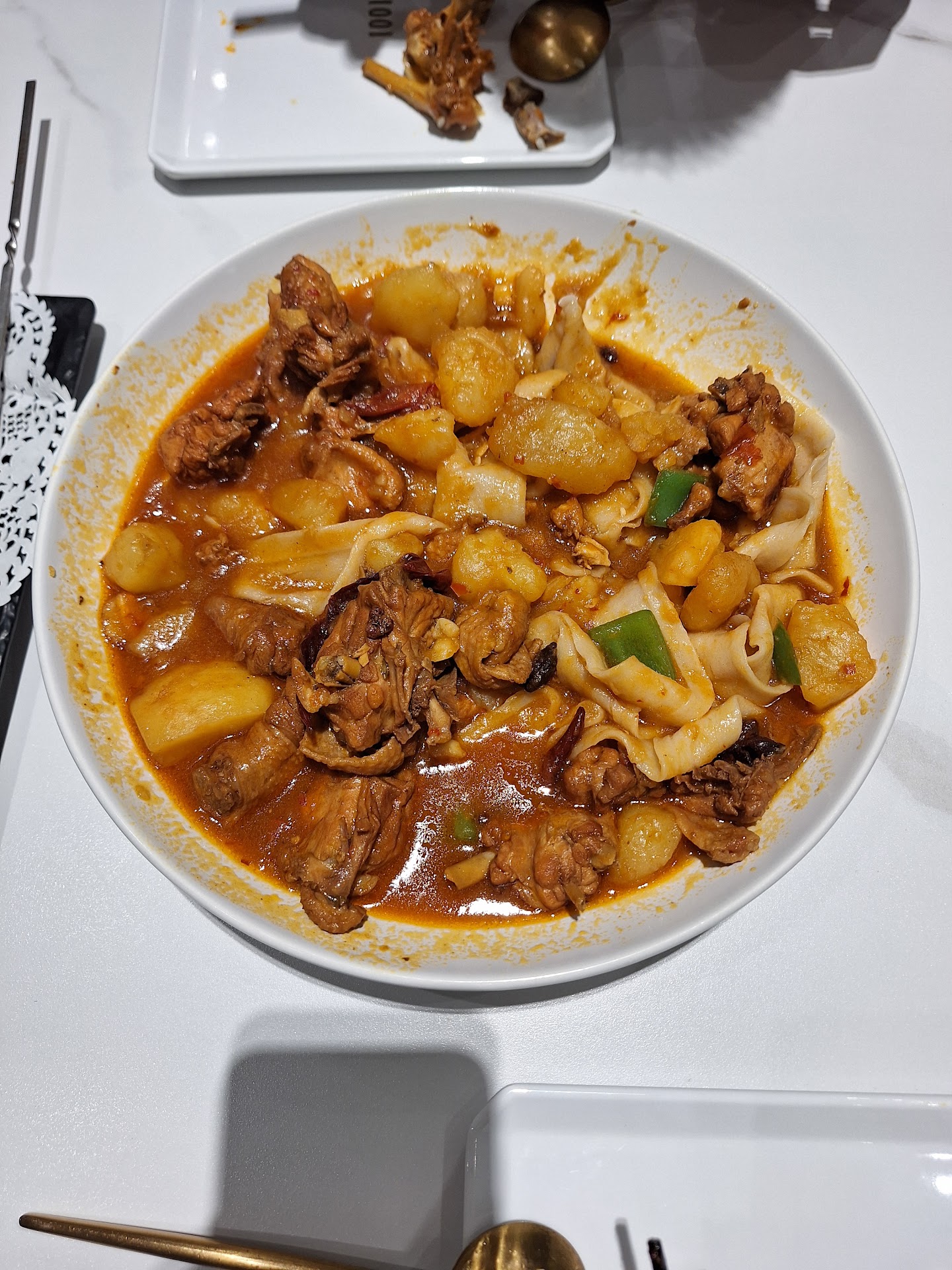 Read moreThe food is amazing and atmosphere is great, you can sit in a cozy Xinjiang style tent. Lighting is comfortable, not too bright or too dark. I’ve been eating here on special occasions for almost two months and every time their soup laghman does the job. Here’s the thing I really like as well, which is that of you crave something really spicy they will add it for you and it’s actually good unlike some other places I’ve been to where they say it’s 爆辣 but it ends up being 微辣 (like the 丁丁炒面). Naan was extremely delicious and they put lots of potatoes in the 大盘鸡.