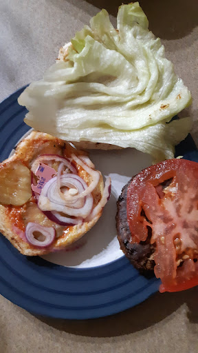 Last night I decided to give this location one more chance. Ordered my food on the spot and walked back home. I wanted to warm the burger up a bit, so I open it to put the lettuce and tomato on the side before putting the burger in the oven. And I found, between the onions, a plastic bag tie!
