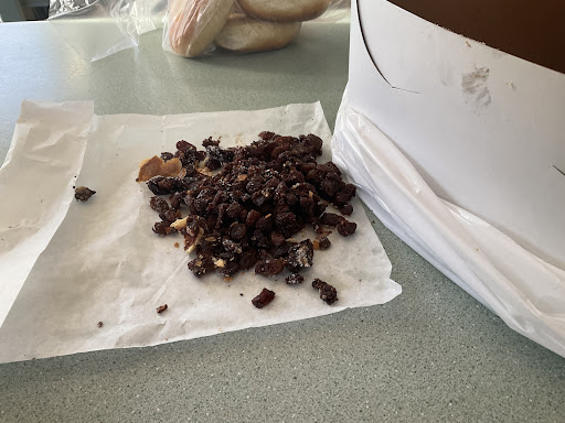 Cinnamon pastry was not marked as cinnamon raisin. Suck it up and pick the raisins out you say? See pic. This was raisin content of ONE pastry, not even all of them. There are a load more in the sink! It was inedible. Even if I looooved raisins, it’s too much. Pastry itself was dry, and tasteless.