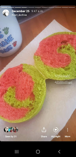 Read moreThere's something about those bagels! I attempted to have them delivered but I am outside their delivery area and was kindly encouraged to pop in for pickup. The place smells AMAZING! And I was greeted by the friendly staff. I had requested their "bagel it forward" package and in no time my order was completed and I was on my way home ☺ I loved the festive bagel I ate for breakfast on Christmas day. 12/10 will make this trip again and dine on delicious bagels and bread. Well done Aba's! Showing a pic of my naked bagel before I covered it in...
