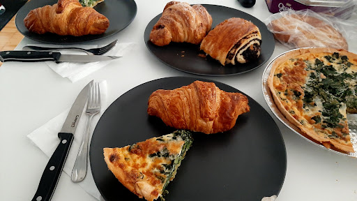 What a great little bakery! I went in with low hopes of the bakery having anything for me to eat, as I follow a whole food plant based diet. I was pleasantly surprised to find onion and potato Roti squares; the squares were stuffed with a very flavorful mashed potato mixed with caramelized onions, and fennel seed filling; they were tasty! What I was impressed with was the Roti, although, not a Roti skin I've ever had, you could tell it was homemade and it was tasty and had a great texture. They, also, had the most delicious palm cookie I have ever had and it was huge! It was thick and flaky and perfectly sugared and buttery, although, vegan! In addition to the Roti and palmier cookie, they also sell apple turnovers that are also, vegan...they looked delicious and they were, also, huge! My husband had a cheddar cheese croissant that he said was fresh and warm, buttery and flaky and filled with the perfect amount of cheddar cheese. We, also, purchased a couple of loaves of French bread...WOW, they are beautiful! They smell great, they are super crusty and light as a feather; the sign of really well made bread. If it is crusty, light and sounds hollow when you knock on the bottom of it, you know it's going to be good! Their products are delicious and of high quality as was the customer service; the ladies were friendly, courteous and knowledgeable of the product. It was a great experience and we will...