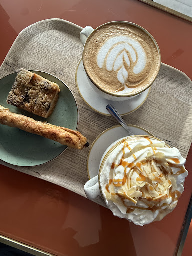 Read moreLovely atmosphere run by lovely staff. While I find all Aroma chains to be pricey, that is the cost of doing business and its how they are able to have such nice menu items, good service, and a great treat-yourself, almost luxurious experience. This feels like a local spot with regulars, staff and other customers seemed to know each other. The store was spotless and beautiful. It has a large array of seating at the front and back of the store, as well as patio seating when the weather is warm. The staff member was nice enough to indulge my indecisiveness and was able to recommend a latter flavour for me and made an extra effort to ask what type of flavours I like. That is above and beyond service. As a retail worker myself, I know how annoying that can be. Thank you again to that person! There is no parking lot, but I was lucky enough to grab a 1hr spot on the residential side street right there. I'm not sure how or where morning commuters would park for a quick pick up in the morning. This seems like a lovely place. Did I say it seems lovely yet?...