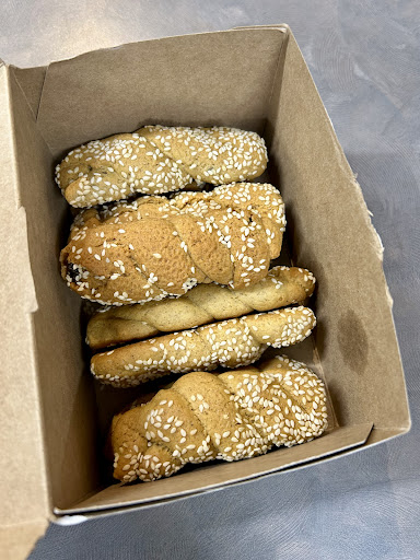 The bakery owner tells me that this is a "Greek Bakery" and there is plenty evidence of that inside the store. Lots of choices of fresh baked bread and the ones I have tried are delicious...fresh and rustic tasting. The is a giant showcase full of cookies and squares...all tasty so far (they are sold by the pound and I am slowly making my way through the inventory). There is also a very large selection of Greek and Mediterranean pre-packaged and canned goods from oils to olives, crackers to candy, dolmathes, tahini, fig jams and spreads, etc. There is also a large dairy section. Lots of fun to shop here for both familiar and "new" ingredients and munchables. They serve a variety of fresh coffees ranging from espressos to Capuchinos and tea is also available. There are several high stools at an interior "window bar" and a selection of cafe table sets outside on the sidewalk. The front door is level with the sidewalk so I will guess that it is wheelchair accessible. Parking is available on the street. The friendly and cheery staff make this a pleasant and tasty shopping experience. I recommend that you...