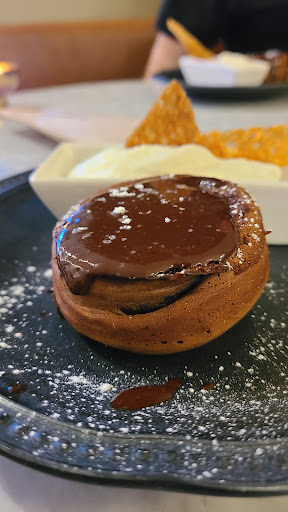 The salmon was great, the server was very friendly, and the music was enjoyable, but the management was poor and unprofessional. My friend and I split the cauliflower gratin, which came out warm in some spots and straight-up cold in others (they clearly have this prepared in advance and pop it in the oven right before serving, which is totally fine). We told them about the slip-up, but since we had taken big first bites and it wasn't a health hazard to eat something like that cold, we just opted not to throw out edible food to avoid being wasteful. At the end of the meal, nothing was discounted or comped because we chose to just eat it and not make a bigger deal about it in the moment, which seemed a bit "cold" of them, for lack of a better word. The manager was very defensive and explained his rationale for not doing anything about it three times in a row (we ate it, after all, and he really couldn't verify if it was cold/didn't take our word for it/basically accused us of lying) before he finally comped the dish. It was a big scene and very disrespectful and unprofessional, and it definitely didn't have to be. There is some decent food to be had here, but we won't be going back out of principle. Just be mindful if you encounter a situation like this there, and maybe consider going somewhere a bit more serious about...