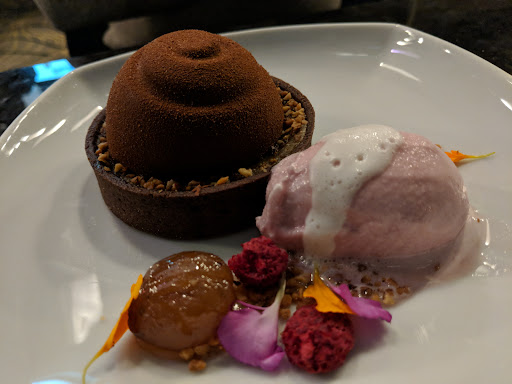 Lowell didn’t just fix the issue—he went the extra mile. He told me I could take the salad home (after checking with the kitchen) and then offered complimentary desserts for the table as an apology. He even said, “If you want to try the mousse too, why not?” I mean, how could I say no to that? My colleagues both went with the Chocolate Mousse to-go, and even though I’d already ordered the Sugar Tart, I added the Mango Passionfruit Mousse to the mix.
