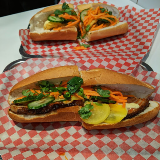 Now, let's talk about the star of the showâthe banh mi sandwiches. Each sandwich is a harmonious fusion of flavors and textures that will transport your taste buds to new heights. The bread is crusty on the outside and delightfully soft on the inside, creating the perfect base for the fillings. The marinated meats, such as the succulent pork belly and the tender lemongrass chicken, are bursting with flavor and cooked to perfection. The vegetarian options, like the tofu or the kimchi mushroom, are equally satisfying and packed with deliciousness.