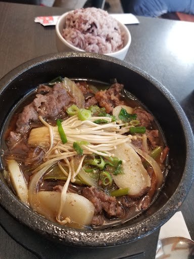 Read moreWe went on a Monday afternoon just after 12 with a party of 3 and got the fried calamari, cheese corn, and vegetable bibimbap. The fried calamari $10 was very greasy, while the batter more than overwhelmed the thin rings of calamari. I think I got 6-8 calamari rings that came with sweet and sour sauce. The cheese corn was a very small and flat portion, definitely not worth $10, but it was delicious while hot, then not so much. The bibimbap was $15 and good portion that came in a hot stone bowl. I received 3 small plates of condiments to mix in with the bibimbap. I think they were spiced cucumber quarts, kimchi, and fish cake strips. There was a sauce, I forgot the name of it, that was supposed to be added to the dish to augment the flavour but it did nothing for me. The service was pretty good I would say. My friend requested that the egg on top of the bibimbap be more cooked, and they did that with no problem. The wooden bench was very hard to sit on. And also, you can’t move it closer to the table, either because it’s stuck to the ground, or maybe it was just too heavy for me, so after 10-15 minutes, it was getting uncomfortable to enjoy my meal. The place itself wasn’t too busy, or loud, so it was the perfect setting to talk with friends and hear each other talk. I forgot to take...