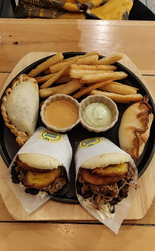 Read moreWe went in the last day of summerlicious. And decided to be inside as we have two kids. Air conditioning was not working well. Washrooms are clean. We are vegetarian so we ordered the vegetarian arepa and one mushrooms and cheese and one spinach and bechamel empanadas. Also one of each deserts and two papelon. It took long time for the waitress to take our order and then to be ready another while. However she was kind and asked us if everything was going well couple of times. Papelon was disappointing. Small portion and wired after taste. Not sweet or lemony. It supposed to be melted panela (pure cane sugar) with lemon. Usually makes me smile this drink because it reminds me Venezuela. But not this time. Arepa is in the small side and only with a small tajada (fried sweet plantain on top) beans were seasoned with sugar (as expected) and cheese was ok. The dipping sauce taste just like in Venezuela 👍🏻. Yuca fries were the best. And the open Argentinian empanadas were delicious. Also in the small side though. Deserts not that good. The fried donut are tasteless and dense even with the dulce de leche sauce. And the alfajor was ok. I had high expectations, since I don’t get to eat often Venezuelan food and I miss it quite a lot. And I was a bit...