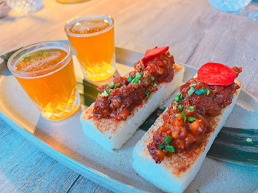 The prawn balchao toast looked rather tame, until I bite into the soft bread and was greeted by the diced shrimp covered in a tangy fiery chili. Luckily, there were cold shots of beer to help soothe the tongue, which we’re told to have a sip of with every bite. Um yes, you’ll need it.