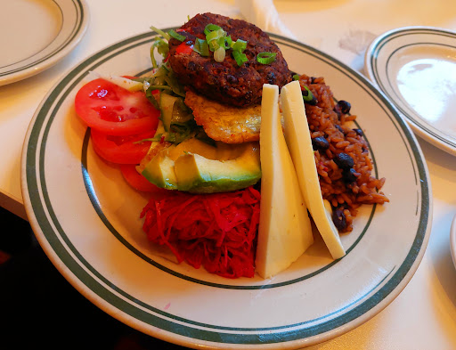 Now lets talk food. I am vegetarian and we did enjoy every bite. The portions were a good size and tasty. The "patacones"/fried plantains in the "Veggie Plate" were excellent, same with the "rice and beans". Ok, one of us was not a vegetarian, hence the other picture - 'Guava BBQ Beef Short Rib'