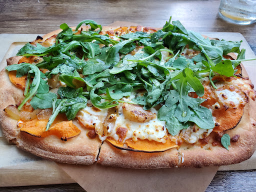 The first time we went was in the evening and we sat inside. We ordered the Margherita Flatbread, and it was delicious! The crust was crispy and soft on the inside. The flavors complicated each other, and we enjoyed splitting the appetizer. We went a second time within a week and got the chicken flatbread and also the cheesecake and thought it was great and super delicious .