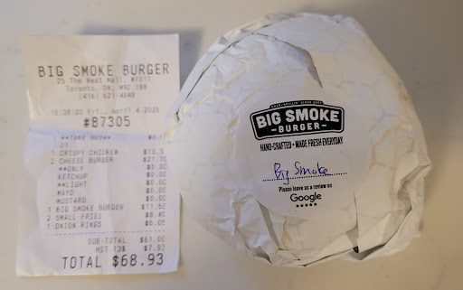 Read moreI had the spicy burger combo today (to go), which is their regular hamburger + jalapeños. To start with the positives, the food is tasty, delicious and unlike some of the reviews here, no, you cannot compare McDonald's to this, this is superior premium burger taste. The negatives are mostly pertaining to this location in this mall. Even without the lunch crowd, off peak times, expect 10-15 min for your order...long wait times if you are hungry, but it is cooked in front of you so that's still good, and fresh. The lady preparing the order today was very dismissive and uninterested. I asked for extra sauce, was informed by her, looking away, that they have to charge me for extra sauce. This is unheard of from five guys, hero, burger factory, all other competitors will gladly give you sauce on the side, or extra condiments if you politely ask. Lady server stated a firm No, asked me if I want to pay for the extra sauce? I politely declined. Then I asked for extra ketchup packet for fries, was again told no, I can only get a single packet in my order, already inside bag, no extras allowed. Ugh, sour note, uncool service. The fries order, like some already mentioned, was a bit small, you will still be hungry. But the few fries you get at this location, and the burger itself, they were tasty and yummy overall. I would recommend Big Smoke burgers, but not from this mall, check map for different locations and try them out, then post your...