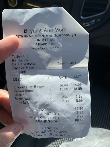 The service at Biyanis and More was impeccable. The staff was attentive, friendly, and knowledgeable, ensuring that every aspect of the dining experience was enjoyable. They were quick to offer recommendations and went above and beyond to make sure we were comfortable and satisfied.