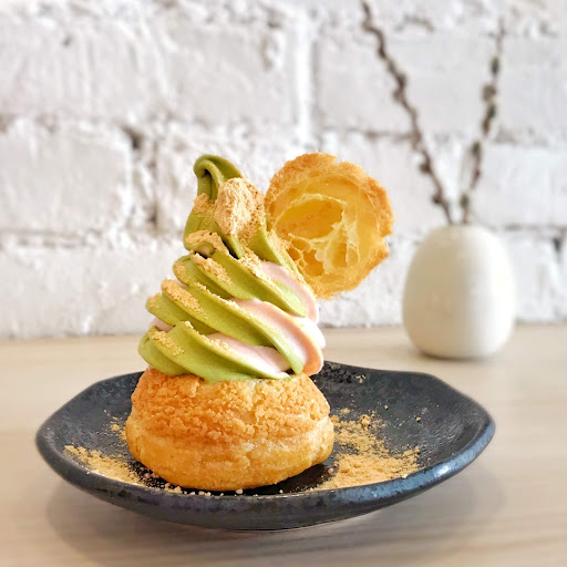 Matcha and Strawberry Soft Serve with Kinako in a Puff: The matcha soft serve itself tastes similar Tsujiriâs (one of my favourites) but since I got the mix, I found the strawberry was a bit too overpowering for the delicate matcha flavour (if youâre a strawberry pocky fan, youâll love the strawberry soft serve), but was still good. I recommend getting the soft serve by itself because choux (puff) in general doesnât have much flavour and is pretty bit dry so it needs that decadent custard cream filling to add flavour...