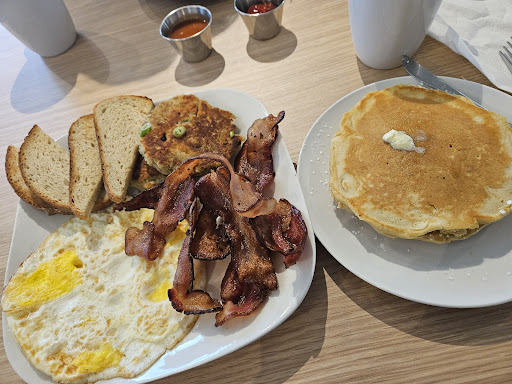 Read moreCame here twice recently: first time with my special needs toddler. Even though they donât take reservations for less than 6 people, they did for our group of 4 upon knowing that we had a child with special needs. The staff were excellent with our daughter and my toddler aged nephew. Service was prompt and attentive. The food was amazing! The kids menu is big and more than enough food . The eggs Benny are so deliciousâŚhome made hollandaise sauce. $8 mimosa on Sundays and their Caesar drinks have the best garnish (pieces of breakfast sausage , bacon and olives ) - a little appetizer in itself . The place is very clean as well, especially the high chairs. They additionally have a bunch of board games that you or the kids can play with at the table. Yes, this is not your typical greasy spoon place (to those few who complained )but this is place doesnât advertise as such and glad it isnât. I rather pay bit more for quality ingredients that are clearly made in house than Wonder bread and super processed, high sodium food that is cheap and unhealthy. You can still get a glutinous breakfast here that you would at a greasy spoon place but with some quality to it and not greasy. If you want to go to a place that is both geared towards adults and kids with high quality food and drinks, and with staff who are attentive and pleasant in a space that is bright and filled with natural light, this is the place to go. Our new...