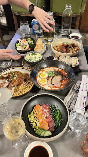 Read moreI've been back 4 times to this place to hang out with family, coworkers, and friends on separate occasions. The broth for their ramen dishes and mussels dish are immensely tasty. Their pork, chicken, and beef barbecue is fantastic - the pork and chicken were flavourful and the beef was super tender. The chicken karaage looked simple but was juicy delicious. My partner is vegetarian and they had plenty of dishes for her. She's also a beer lover and their selection was great. The service was fantastic, attentive, and very accommodating. The servers are not overbearing but ensured our waters and drinks were filled at all times. They also are very knowledgeable in the drink menu and have always recommended a good pairing beverage to our dishes. Although they don't advertise as child friendly, I was pleasantly surprised that they had high chairs for babies and children chopsticks for children. One time we brought our stroller and they even found a place to store it, even though we had no problem leaving outside (but they insisted on keeping it safe while we ate). I overheard the manager teach a new server the correct way to place the utensils on the bowl, which impressed me that they even considered that level of detail.