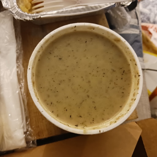 Read moreOrdered delivery through uber today. We got the pulled pork sandwich with spicy fries bogo deal for 19.75. With basic add on's it ended up moving the total to $30.00 which was $15.00 each so not really a deal. Sandwich was size of hamburger bun pork was nice and smokey and I liked the coleslaw on it. The spicy fries need some salt as the rub was a bit bitter. We also ordered Mac and cheese with bacon which cost $8.00 beware the portion is small althought it is cheesy but needs salt. Mushroom soup was pureed, did not look like their picture and it did not taste like mushrooms we did not like it. Lastly I ordered 2 pickles both a nice size but not cut like the picture and when I bit into one the juice squirted all over my face! Please make sure you cut them in 4 so the juice will drain. Overall...