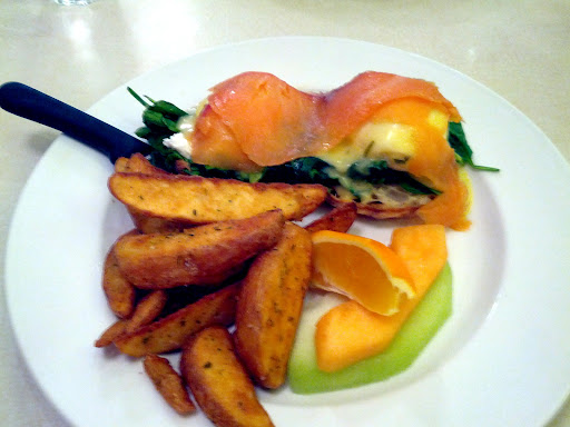 I got the eggs Benedict with smoked salmon, and this is the first place where I’ve seen spinach being put in. Not that I’m one to care about spinach, it’s a pretty yummy vegetable, but I feel like it overpowered the whole dish.