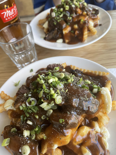 As we were quite hungry, we ordered appetizers right away — the poutine and nachos. The poutine was passable, but the nachos were extremely disappointing. For $25 (plus an automatic 20% gratuity), we were served what looked like the lowest quality bar nachos topped with processed "squirty" cheese, a few canned pickled jalapeños, scattered tomatoes, and red onion. Unfortunately, we ate them only because we were hungry — not because they were remotely enjoyable.