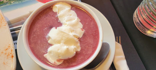 We got some starters and my wife got some Perogies & Sausage with sautéed onions, sour cream, and coleslaw topped with half debreceni sausage and it was great. The perogies were cooked well and tasted great and the sausage was full of flavor, so very satisfying. I had the cold cherry soup, something that I used to have on Christmas Eve dinner with my grandmother and I was very happy with the flavor. It was not exactly what my grandmother made, but it was great nevertheless. With how this all started, we were both really looking forward to the rest of the meal.... but ended up disappointed.