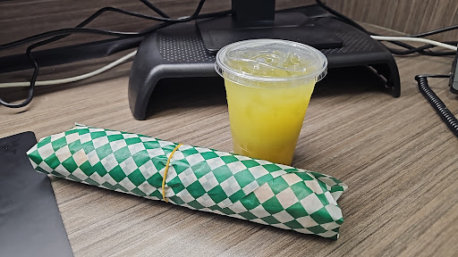 Took home frozen Banh bot loc goi la chuoi (shrimp & pork sticky rice cake) wrapped in I think banana leaves perhaps, easy steam for 7-10min. Comes with sticky sweet chili style sauce. It was delicious and nice chewy texture.