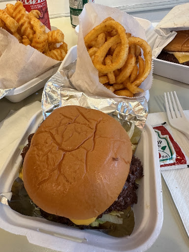 price is comparable to five guys and shake shack, regular double burger is $12 + tax, while the holiday burger is $14 + tax. regular fries is $6, curly fries are $8, and holiday fries are $10. i wouldn't get the holiday fries again just based on the price and size. our meal was all in all around $55 total which honestly is a bit steep for fast food burger.
