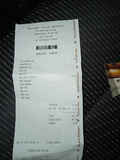 Read moreI normally give great reviews about restaurants but the service I received tonight was truly the worst. I went through the drive through ordered using my coupon #3040, and #2400 bill came to 26.05 so I figured I should change to family bundle. Bear in mind it's 8pm no one else on the drive through..bill was now 30 bucks so reluctantly decided to change my mind saying to customer rep why bill so high...his reply its the tax we in Canada. So I order my original choice..so the order takes who I found out was the manager , he was rude and obnoxious. I had to go inside after waiting outside i got the wrong sandwich and when I asked him to change it he says more money. So told him the coupon says either same price just different codes. He kept on insisting he won't change the sandwich it was my mistake . After a screaming match between he and myself another customer offered to pay. I told the customer no , even another staff came by to stop him , she even made the sandwiches but it took him so long to come off his high horse to give me right sandwiches. That guy is a disgrace even worse tge store manager, how can he train his line staff. he has no patience and has no right working with customers. He should be ashamed and when I asked him for the owners information. he replied Google it. I wont be going back there. I almost got an aneurism dealing with him over food. My goodness...
