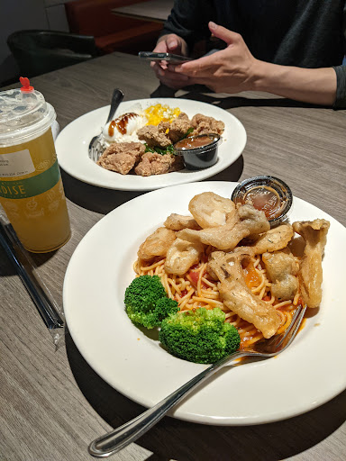 Food: --- popcorn chicken. Very tasty, this is what I order if I'm in the mood for something savory. Get the snack size ($10) rather than meal version ($13). The snack size is better value as it comes in a good portion size, while the meal version just comes with plain rice, a boiled egg, a brussel sprout and a zucchini which were pretty flavorless and not worth the extra money. --- Angus burger ($13). Roommate ordered this and said it was tasty. --- curry chicken. It was okay, but again you can get pretty much the same thing at Stay Cafe but tastier and for the same price if not less. --- Ditto for the takoyaki --- teriyaki spaghetti. It was teriyaki chicken on top of spaghetti with tomato sauce. Weird combo, I wouldn't order it again.