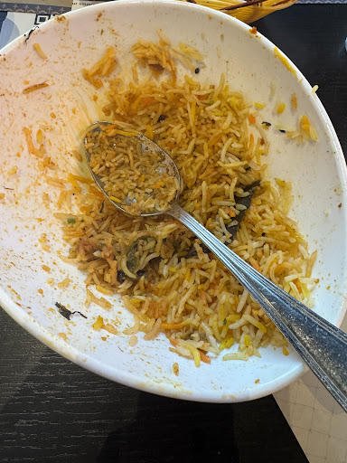 The biryani was absolutely horrible. The rice tasted like it had been sitting in the fridge and just microwaved. The chicken was frozen and undercooked. At first, when it was still warm, the flavor was just tolerable — but as soon as it cooled, the rice turned hard and rubbery like plastic rice.
