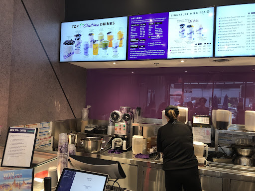 Right by UofT and ROM, you have ChaTime in the perfect location except right now it's under a mess of scaffolding. It's open but its so hard to see where it is from the street right now. Just look for a flash of purple signage and you're there. The store has done one thing well... it's put the line direct from the door up the side to the ordering spot. It's not crowded into the front or spilling into the seating area. The seating area has a number of tables but I'm going to be honest, it's a bit of a mess. It's clear the UofT students love this spot because you can see so many just take up entire tables themselves while studying or it's a mess of old napkins. This is definitely an university hang out spot.