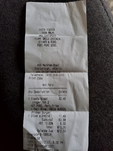 Ā Ā Ā Read moreToday I came to pickup food I ordered from Uber eats , when I went to pickup food a new girl that recently joined I told her I ordered food on Uber eats for mahmood , she brought the food at the counter and started arguing with me rudely by saying give me the order number , I told her that itās my order if it wasnāt how did I know the persons name ?? Makes sense right . But look at her level of incompetence she still argued with me , then I asked her to call the manager instead she asked her Moroccan or Arab co worker to come out and talk to me , she acted the same and in a rude and aggressive manner started arguing with me I kept on telling them itās my food if it wasnāt I wouldnāt have guessed the name , Instead she started laughing at me and kept on laughing and then in a cunning manner asked me what did u order give me all the details bc it could be anyone, indirectly implying that Iām trying to steal the food . I told her I grew up in Markham and Lawrence my boys used to work at chick fiesta my dad knows the owners and Iām a regular customer this isnāt how u treat ur customers , she was still laughing at me as I took the food outside . Iām very disappointed for this lack of professionalism and Iāll also talk to the owners who r Pakistani like myself . I have decided Iāll never come to chick fiesta ever again , I value my self respect more than dealing with unprofessional , untrained bipolar staff . Congrats to the owners for losing a loyal customer tdy next time I advise u guys to pls hire professional staff . I used to come here since I was a kid ⦠I would also ask the owners to take a look at the cameras and see for themselves how I...