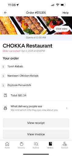 Read moreTwo nights ago, I ordered two squares of kebab (without rice) on Uber Eats and even called the restaurant to add extra tomatoes. Shortly after, my order was canceled — and Uber Eats showed that the cancellation came from the restaurant’s side. Tonight, I discovered that I was still charged almost $82. That’s really disappointing. If the food isn’t available, the restaurant shouldn’t keep the item active on the app. I contacted Uber Eats support, but they said they couldn’t refund me. I’ll never order from this place again and wouldn’t recommend it to anyone.