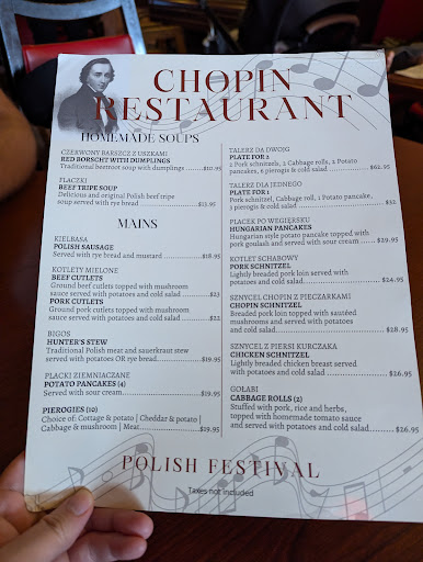 Read moreAte here for the first time today , Nov 12 2017 . The first obstacle was trying to order while a couples 2 young girls pounded wildly on a piano , and yes the parents are partially to blame but the management should have stopped it for the sake of the rest of the patrons so we didnt have to . The food was not good Ie. The cabbage roll was barely warm and bland , The shnitzel was also not hot & had more breading than meat and was not crispy . My friend inquired about getting a soup for her husband to go BEFORE we ordered our meal and when we prepared to leave 40 minutes later , she asked the waitress for the soup only to be told they ran out . She then decided to order a shnitzel sandwich to go , PLAIN , NOTHING ON IT , and emphasized this strongly . The sandwich arrived with dill pickles, tomato ,lettuce and tomato sauce on it . Personally I would have sent it back . This is why this restaurant is nearly empty while the one up the street has a crowd on the sidewalk waiting 30 minutes plus for a seat. Will...