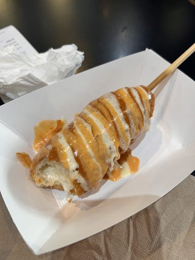 Read moreI got the double cheese rice dog and I loved it! Cashier took my order with no problems but he could've been friendlier which is why I only gave the service 4/5 stars. Food took about 5 mins to make. They have a lot of selection. The price was fine (in my opinion). There's also app you can download to get points and rewards. The cashier didn't tell me about it, I just saw it on the screen when I was about to pay so I downloaded the app first before paying. You can get only minimum 3 sauces and 1 seasoning. I didn't like how they limit you like that. The guy didn't put a lot of seasoning when I told him what seasoning I wanted. The food was good, I just noticed that when I was more than halfway done the rice covering part was starting to slip off, making it a bit hard to eat. I think they need to make the rice dog covering fit better with the sausage. I also remember the rice dogs being a bit longer in size when I went to other locations. There is a washroom too if...