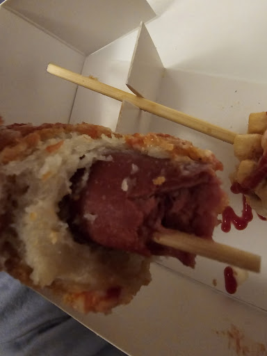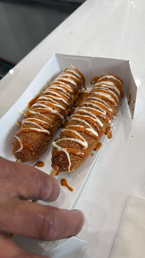 Read moreOrdered a Potato Hot Dog (right) and Half Mozzarella Half Hot Dog (left). Both with BBQ and teriyaki sauce on top. Both were good. The half/half isn't split like how the photo is shown (a lengthwise cut hot dog with mozzarella filling it's other half), it was actually mozzarella cheese for the top half and then half a hot dog for the bottom half (poorly pictured). No complaints from me but if I had eaten it normally I would have thought I received one of the cheese only options by mistake.