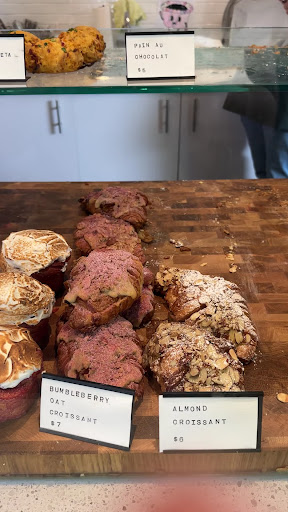 I'll like to give 4.5 stars but Google doesn't allow that, because everything was good-to-great, even if their "classic" award-winning butter tart wasn't to my liking, because their location is first-rate--aesthetics/vibe, space, staff, food selection, even the outdoor seating with cornhole games was nice. I picked up one of the "Everything But the Bagel" croissants and a large brewed coffee for "breakfast", with a chaser of classic butter tart. The croissant was sliced and filled with a fluffy cream cheese spread--just the right amount (not too little but certainly not like the amount you'd get in NYC!), and covered in everything-bagel seeds. As croissants go, pretty good--very flaky and good lamination, maybe not the "shatter" quotient that some purists would expect, but this wasn't a standard French croissant anyways. As a breakfast, it was massive and filling. A good deal at $6. My only quibbles: I rate bakery-cafes (vs. cafes with baked goods) on their drip coffee, not their barista-prepared espresso-based drinks, and their regular brew was not particularly tasty. Espresso-based drinks are often a reflection of the barista, bean quality/freshness, and equipment, so it can vary widely. Brewed coffee shouldn't, assuming decent equipment. My other quibble is the jelly-like consistency of their butter tart--the crust was flaky and perfect (assuming you prefer that over the more buttery, cookie-type crusts), but the filling was kind of an in-between: not runny, as many prefer and as you would find in many a small-town bakery, and not firm, like the sugary filling at Andrea's, and strictly on personal preference I would've liked one or the other. The size was quite large--height was quite tall, filling copious. At $4, well priced. With tax and tip, about $18, which some might consider ludicrous, but in these COVID/post-COVID days, normal. I'd gladly come back to try one of their cruffins or other baked goodies, and maybe a...