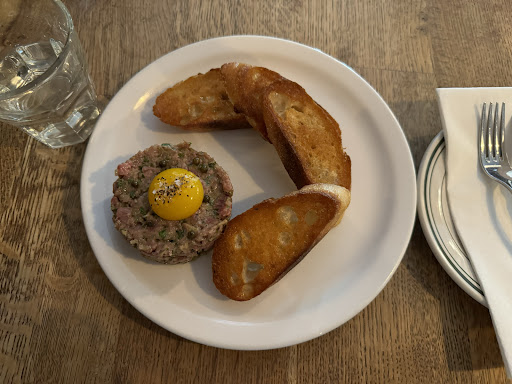 We ordered beef tartare, white asparagus, and a steak. The beef tartare was served first, and we finished it entirely before anyone even came to clear the plates. After waiting around 15 minutes, a polite male server with glasses noticed and cleared the table when we reminded him that we were still expecting more food. The asparagus came shortly after, but then we waited another full hour with no sign of the steak—and no one checked on us once during that time to update us or ask how things were going.