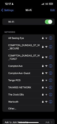 Read moreI wouldâve scored it higher except for a really odd thing that happened. I wouldâve left but I had already ordered a beer and some food was on the way. After a weekly rehearsal with my band I thought I would walk about 1 min down the street from my place and try this place out for the first time. I was sitting alone at the bar and about 5 mins after I sat down I tried to access my email and social media etc. on my phone. There was no service. I am with PC Mobile and it can be spotty service at times, especially when youâre inside a store/restaurant etc. So I looked at the wifi connections available and saw one called ComptonAve-Guest. I kindly asked the person that sat me for their wifi password. Response: âWe donât give out our wifi passwordâ. Huh? In 2024? Even if you have one called âGuestâ? That was odd. The meal made up for it slightly but sitting alone at a bar with no access to your phone can be a bit of an odd circumstance nowadays. I guess I couldâve talked to the people beside me but they were out on a date⌠I am sure the last thing they would want is another guy to join in the conversation while theyâre out on a date. Not sure I am going back. Good thing there are so many other options on Dundas within walking distance. I have met and I am a huge fan of Frankie Solarik and his group of restaurants (Bar Chef etc)âŚfrom my past visits but this place was slightly off...