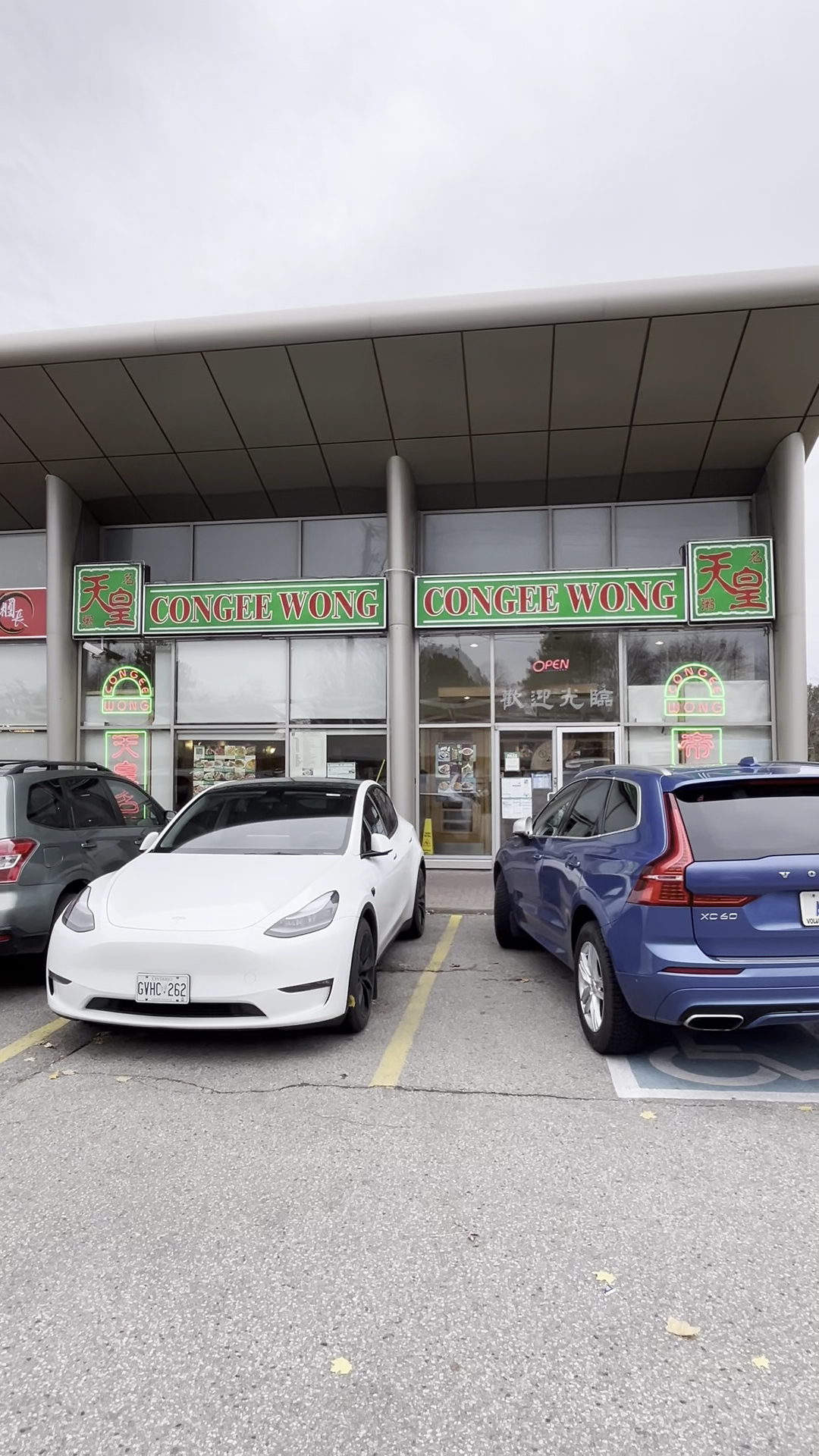 The restaurant is at the corner of a busy plaza, so parking is tight on holiday. It is a recarnation of the similar congee and noodle theme establishment on the same site but under new management. The menu looks exactly the same as their sister restaurants. Though the place was full with families, couples, big groups of friends, the line up is much shorter. We were happy about that. Staff were super efficient. We got seated as soon as the table became free. Having had numerous meals at their other places, we needed no time to decide what to order. And they were just as quick to bring out the dishes. Unfortunately, the first ominous sign came on the top of the first bowl of congee, shreds of dark brown lettuce 😬. The lettuce is supposed to be the fresh green crunch to contrast the white and soft congee under. Dark brown is not just a big blamish on the look, also questionable standard. In reality, lettuce once cut, the eadges turns brown easily. No one expects them to throw it away. However, all it takes is a quick chop off the brown bits. Apparantly, no one cares enough to do that one cut with a knife. The next surprise came quickly, the congee itself. It has the texture of gravy from a tin can, thick, gooey, completely void of any trace of rice grains. Granted, good congee is supposed to be soft and smooth. This concoction seems like a foreign immitation. I can only venture to guess it is a roux made from rice flour. Someone came up with the great idea of a quick fix!? I believe in efficiency but this short cut to cook congee is a travesty! How ironic that the restaurant is named King of Congee. This the first time I have ever had a congee like that in all their other related restaurants. Why only this location have such disregard for their signature product?? Good thing no more surprises for the rest of the dishes. The noodle has nice texture though all the toppings were just average. Still, chinese restaurant are usually good value. Congee Wong offers value. Only if they could do it with little more heart and a bit more pride, it could be a nice place for a quick meal. One can hope they will catch up with their sister...