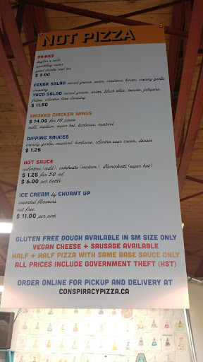 Read moreOk.. I luv this place for the name & the awesome pizza names like "crop circle" or "chupacabra". It's a bonus that they have great vegan options & gluten free for my friends. I took my coworker here for the XL Government cheese pizza it totally reminded him of the "Big Slice" on Yonge St. that shut down... He luv's this place now! I like the paper thin crust, which is crispy to keep the toppings on, the outside crust is doughy if you like more bread, I don't. I like an even balance of topping to crust ratio... If you want more go to the chain places (on every corner! Lol) I would recommend eating there, traffic with the construction in the area makes delivery tricky & pizza enthusiast know it tastes best out of the oven... The steam that comes out of the box is great! Parking is available, during the lunch rush street parking is also available, super busy location. Staff are friendly & accommodating, best ingredients. Water in bottles in the fridge or buy the pop, also recommended. Not to saucy which I like or the toppings slide off on your lap! Lol. Get dipping sauce on the side if you need to drown your 🍕 pizza. Best wall mural!! Atmosphere & pizza names make this place an...