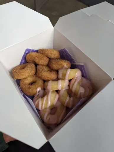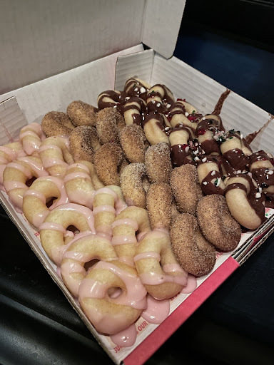 There was no line up when I arrived around 7:30 in the evening. Staff was very friendly. I purchased a hotbox which contained 36 mini donuts divided among the 3 flavours that were being offered that week. Glazed; Cinnamon and chocolate peppermint. I waited around 10 minutes for the donuts which meant they were a fresh batch. The bite sized donuts were moist and delicious. We took a picture and inhaled one on the spot before driving home.