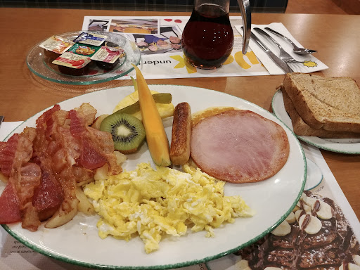 There was nothing of interest that I wanted as each entre had at least 1,800 calories. It's impossible to order eggs, bacon, and toast because it comes with a mound of home fries and fresh fruit, perhaps even two pieces of toast. I can't eat that much. This place needs a lighter fare like a green salad or a simple 1/2 sandwich, like $9.99 instead. I think today is my last time here as it just doesn't appeal to me anymore. After a while, new meals should be added because it's the same old food that you get tired of eating, plus you turn into a ten ton Louie walking outta there.