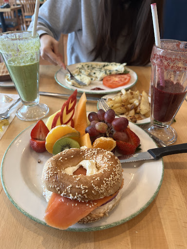 Lastly, as we were leaving we noticed one cook in kitchen wearing hair net but her hair was not fully covered at all & outside of her hair net. Hence, why we probably had a hair in my wife’s tomatoes. The breakfast was just OK. My smoked salmon bagel with fresh fruit was not worth $20+? The fruit was more plentiful than the actual salmon on the bagel.
