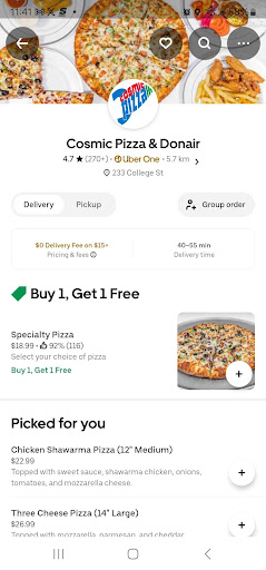Read more"Five-star delivery experience with Cosmic Pizza! ⭐⭐⭐⭐⭐I can't rave enough about the stellar delivery service from Cosmic Pizza! From placing my order to the moment it arrived at my doorstep, everything was flawless.First and foremost, the pizza itself was out-of-this-world delicious. Despite being delivered, each slice maintained its freshness, and the toppings were perfectly distributed, creating a mouthwatering flavor sensation with every bite. It's clear that Cosmic Pizza takes great care in preparing their pies, even for delivery.But what truly sets Cosmic Pizza apart is their exceptional customer service. The delivery arrived right on time, and the driver Nadeem was friendly and professional. They went above and beyond to ensure that my order was accurate and that I was completely satisfied with my meal.The ordering process was a breeze too, thanks to their user-friendly website and efficient delivery tracking system. It's evident that Cosmic Pizza values their customers' time and convenience, making the entire experience seamless and enjoyable.In summary, if you're craving phenomenal pizza delivered straight to your door, look no further than Cosmic Pizza. With their delicious offerings and top-notch delivery service, they've truly earned every one of these five stars. I'll definitely be a loyal...