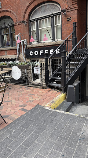 The cafe has both indoor and outdoor seating, and purchasing and serving items requires descending a small staircase (unfortunately, the cafe is not accessible; assistance is required for guests with disabilitiesāthey also do not have a Braille menu).